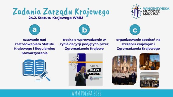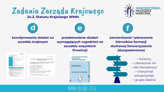 Zgodnie z § 24 pkt 2 Statutu Krajowego WMM zadania Zarządu Krajowego :